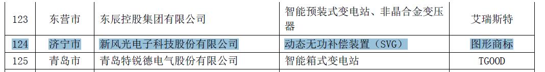 近日,從山東省質(zhì)量評(píng)價(jià)協(xié)會(huì)官網(wǎng)發(fā)布的《關(guān)于2018年度山東名牌產(chǎn)品認(rèn)定結(jié)果的公告》魯質(zhì)協(xié)字〔2018〕8號(hào)中獲悉,新風(fēng)光電子科技股份有限公司(以下簡(jiǎn)稱新風(fēng)光公司)生產(chǎn)的動(dòng)態(tài)無功補(bǔ)償裝置(SVG)被認(rèn)定為2018年度“山東名牌”產(chǎn)品。