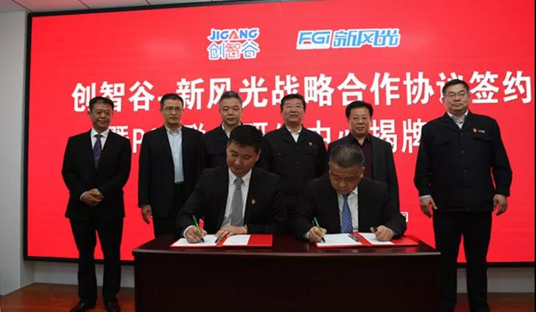 會(huì)議同時(shí)進(jìn)行了創(chuàng)智谷-新風(fēng)光戰(zhàn)略合作協(xié)議簽約暨PCS聯(lián)合研發(fā)中心揭牌儀式。