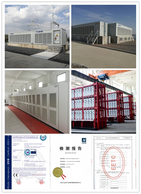新風(fēng)光公司研發(fā)動態(tài)無功補(bǔ)償與諧波治理裝置(SVG)始于2006年,是國內(nèi)研發(fā)制造商之一,公司產(chǎn)品已實(shí)現(xiàn)電壓等級400V-35kV全覆蓋,擁有戶內(nèi)、戶外、風(fēng)冷、水冷、星接、角接等400多個(gè)機(jī)型供用戶選擇。新風(fēng)光高壓動態(tài)無功補(bǔ)償裝置(SVG)于2010年12月通過省級技術(shù)鑒定;2017年在國內(nèi)率先獲得武漢高壓研究所低壓穿越認(rèn)證;2018年公司百兆級高壓水冷SVG成功通過中國電科院型式試驗(yàn)檢測驗(yàn)收,同年產(chǎn)品通過歐盟CE認(rèn)證。