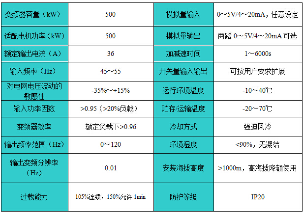 4.1 JD-BP38-500F高壓變頻器技術(shù)指標(biāo)