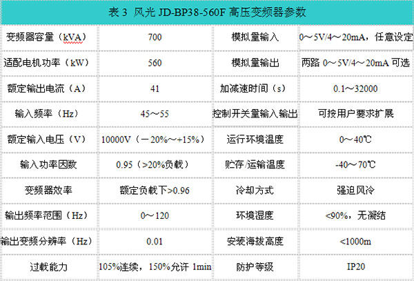 風(fēng)光JD-BP38-560F變頻器參數(shù)如表3所示。