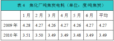 從上表4統(tǒng)計(jì)數(shù)據(jù)看,2009年1~6月同2010年1~6月相比較,噸焦炭電耗有較大幅度下降,下降達(dá):18.17%,其中主要的節(jié)電是由高壓變頻器完成的。