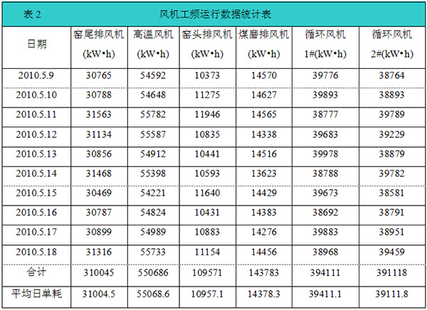 7.3水泥生產(chǎn)風(fēng)機(jī)變頻運(yùn)行數(shù)據(jù)統(tǒng)計(jì)表