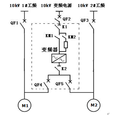 k1和k2為變頻器旁路開關(guān)柜高壓隔離開關(guān);