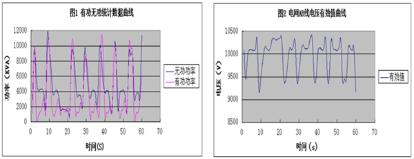 通過使用山東新風光電子科技發(fā)展有限公司生產(chǎn)的FGSVG系列高壓動態(tài)無功補償裝置,軋鋼廠現(xiàn)場電網(wǎng)側(cè)母線在一周內(nèi)功率因數(shù)超過0.95,在軋鋼機運行時電網(wǎng)電壓有效值波動基本低于400V,極大地抑制了電壓閃變的現(xiàn)象,減少了公司設(shè)備的故障率,提高了軋鋼機的運行效率。同時FGSVG產(chǎn)品體積小,運行穩(wěn)定,操作方便,自身功率損耗低。為使用單位帶來了可觀的經(jīng)濟效益。