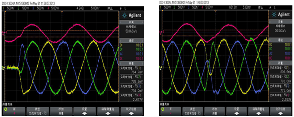 圖5 零電流~正額定電流響應(yīng)速度測試波形     圖6 正額定電流~負額定電流響應(yīng)速度測試波形