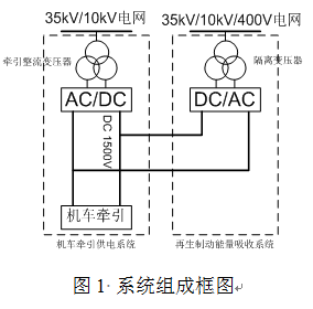 再生制動(dòng)能量吸收裝置是并聯(lián)在1500V/750V直流系統(tǒng)中,經(jīng)過逆變裝置變成交流,經(jīng)隔離變壓器輸入到電網(wǎng)(35kV/10kV/400V)。