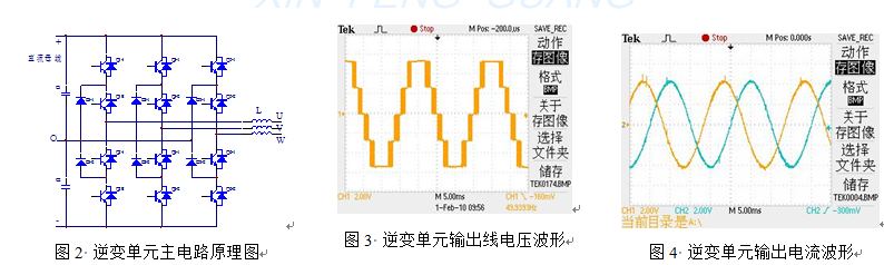 裝置為得到大功率輸出可采用多個(gè)逆變單元并聯(lián),每個(gè)單元獨(dú)立控制,具有冗余工作的特點(diǎn),即使單元出現(xiàn)保護(hù),其余逆變單元可以正常工作,進(jìn)一步提高裝置運(yùn)行的可靠性。而且每個(gè)逆變單元結(jié)構(gòu)上完全一致,可以互換,這使得調(diào)試、維修非常方便。